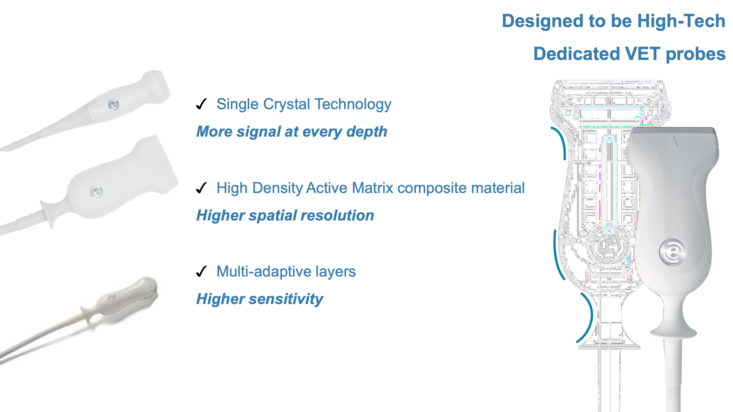 Nye prober fra Esaote med patentert design. De er produsert i composite materiale med ny multi-layer teknologi. De gir fantastisk høyoppløselige bilder og økt doppler sensitivitet for hjerteundersøkelser, MSK og generell abdomen.  Probene leveres med ny doppler teknologi: MicroV, som gir en enestående følsomhet selv i små kar og ved deteksjon av lavere hastigheter. MicroV har en algoritme som helt overlegent separerer bevegelse av væske fra andre bevegelser som skaper forstyrrelser. Med MicroV er det mulig å endre visualiserings algoritme for å forsterke ytterligere det du ønsker å se.