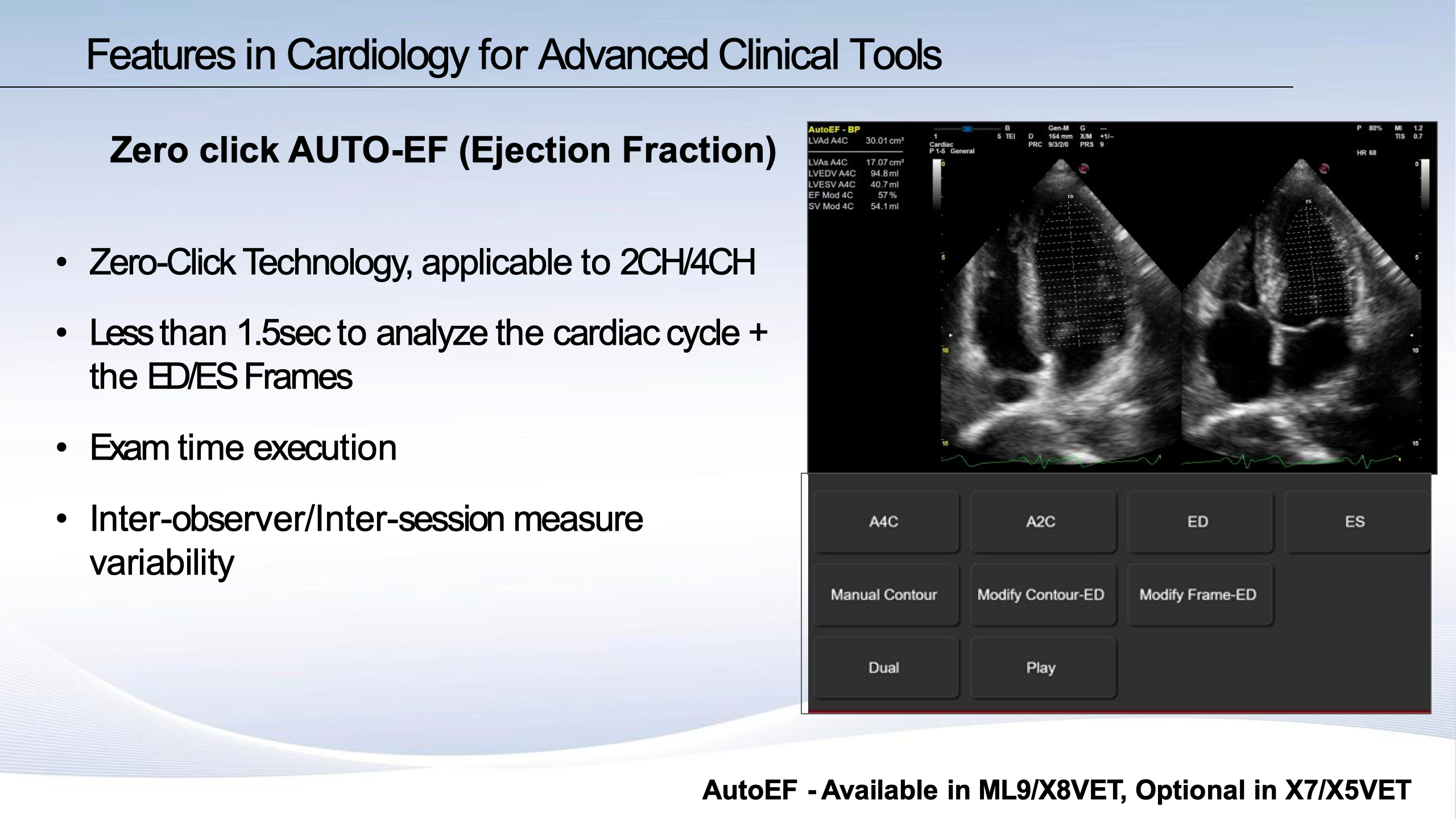 Zero-click AutoEF: helt automatisk Ejection Fraction kalkulering uten behov for ytterligere trykk på apparatet.