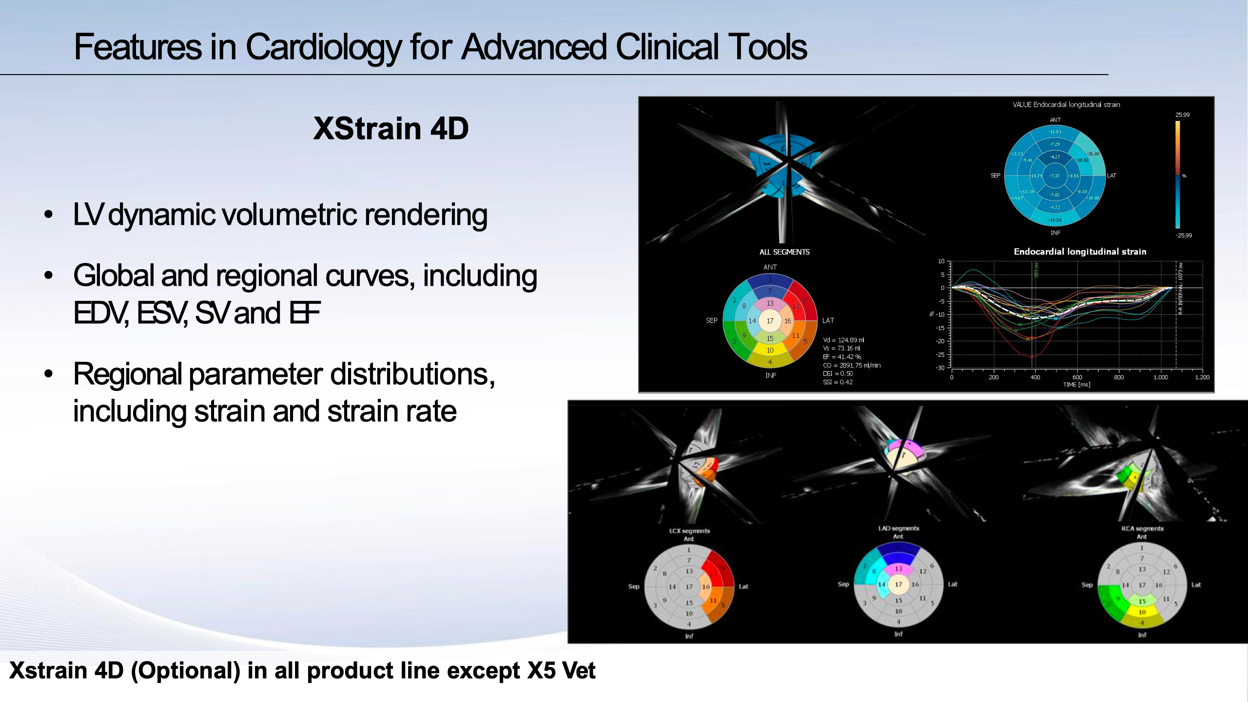 Esaote X8VET, leveres med komplett oppsett for veterinær ultralyd. Arkiv kan lagre dyrets og eiers navn.  Apparatet leveres med veterinære forhåndsinstillinger og grafikk. Programvare for ultralyd av lever, hjerte, milt, nyrer, vesica, uterus/drektighet, pancreas, binyrer, ventrikkel, tarm, lymfeknuter, prostata mv. Lisenser for cardio, elastografi, kontrastundersøkelser kan legges til og leveres med apparatet.