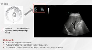 - Raskere undersøkelser med SMART funksjoner som Smart bladder, Smart Track, Smart Hip, Smart HRI, Glazing Flow, Smart Vue og Smart Calc.