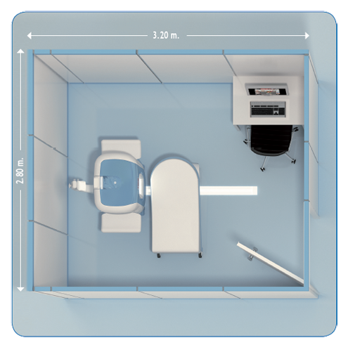 Esaotes unike MR apparater kan installeres i stort sett alle vanlige kontorer. Faktisk kan de bæres inn gjennom vanlig døråpning og installeres i rom ned til 3 * 3 meter. Det betyr at små klinikker med begrenset plass kan innføre MR som ett tilbud til sine MSK pasienter. Om du er usikker på om lokalene kan egne seg gjør vi en forundersøkelse i lokalet dit. Det gjør vi kostnadsfritt for deg. Vanligvis monterer vi RF beskyttelse i rommet og kostnaden for dette er bakt inn i prisen på apparatet.