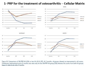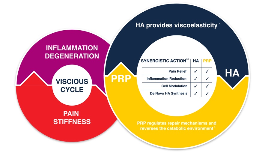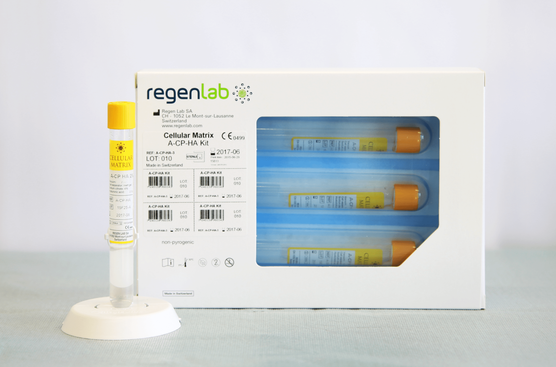 Kombinasjonen av PRP og HA i Cellular Matrix® PRP, skal smøre leddet samt optimalisere brusk og vev gjennom HA sin kapasitet til å binde væske og dermed PRP. Dette vil ha best effekt hos pasienter med mild til moderat artrose. Flere nyere studier (2019) kunne bevise at Cellular matrix (PRP-HA) hadde en betydelig bedre effekt på både smerte og funksjonalitet hos pasienter med artrose enn kun hyaluronsyre alene. RegenLab er anerkjent som den ledende leverandør av patenterte teknikker for fremstilling av autologt blodplaterikt plasma. RegenLab har CE godkjenning, og over 2 million pasienter er behandlet med deres PRP systemer i USA, Europa og Asia.