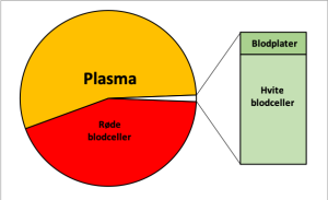 Blod inneholder plasma (55%), røde blodceller (44%), hvite blodceller (1%) og blodplater (<0.15%). Plasmaet, som er en gul farget substans, inneholder næringsstoffer, vitaminer, hormoner, proteiner og koagulerende stoffer.