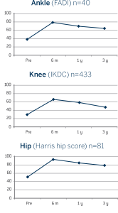 Intra-articular A-PRP®injections for symptomatic early stages of knee osteoarthritis induce significant reduction in pain and improvement in function after 12 months, which can be further improved at 18 months by annual repetition of the treatment.  Gobbi, A., D. Lad, et al. (2015).